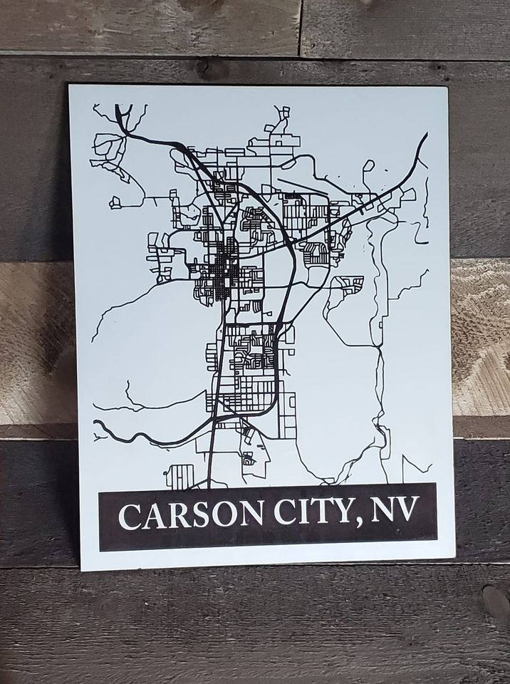 This lovely city map is laser engraved with a glossy white background and is a great home décor piece.