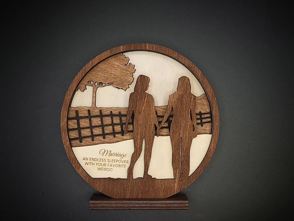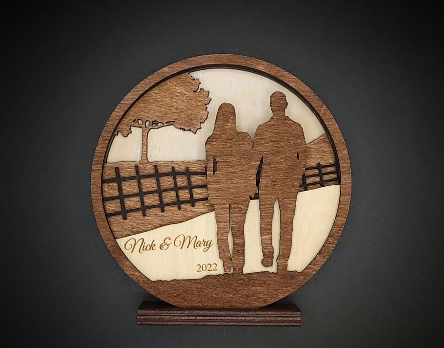 This customized display piece features a couple walking and is the perfect gift for your significant other for a birthday, anniversary, or just to say I love you. Features a multilayer construction that give the piece depth.