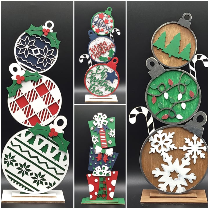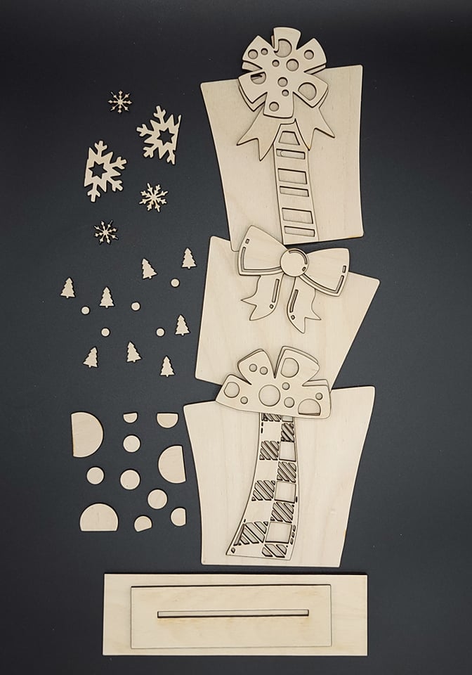 1 x 12" wooden stacked presents/ornaments (unpainted)